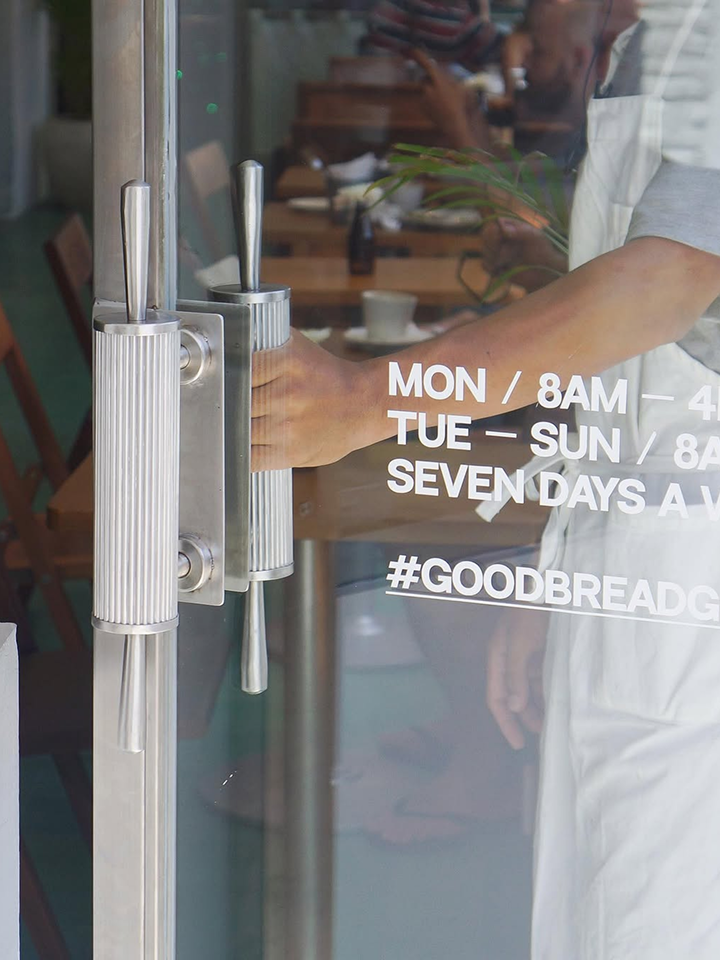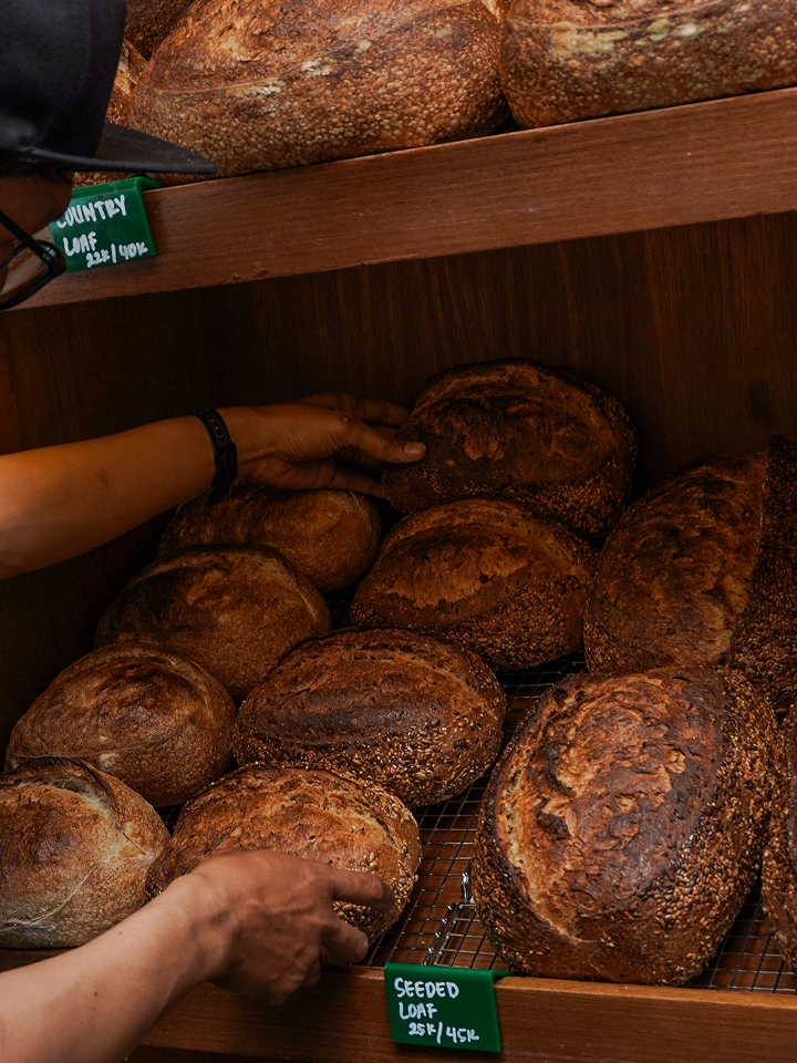 THE PASSION EXTENDS BEYOND. WHAT STARTED AS A FOCUS ON CRAFTING FRESH, ARTISANAL SOURDOUGH LOAVES SOON GREW INTO CREATING A SPACE OF OUR OWN, A PLACE TO EXPLORE, CREATE, COLLABORATE, AND CONNECT WITH OUR CUSTOMERS FIRSTHAND. WE OPENED OUR FIRST CAFE DURING THE PANDEMIC IN 2020, AND WE’VE BEEN CREATING EVER SINCE. FROM THE BAKERY TO THE KITCHEN AND BAR, OUR TEAMS PUT THEIR LOVE INTO MAKING WHOLESOME PRODUCTS. WE SERVE FRESH-BAKED GOODS, GOOD CUPS OF COFFEE, AND COMFORTING BREAKFAST AND LUNCH.